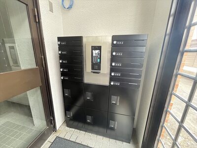 - 宅配BOX、BS、オートロック、エレベーター、駐輪場、バルコニー、モニタ付インターホン、ガスキッチン、室内洗濯機置場、独立洗面所、シャワー、シューズボックス、収納、温水洗浄便座、都市ガス、エアコン、ガス暖房、照明機器、浴トイレ別、メールボックス、インターホン
