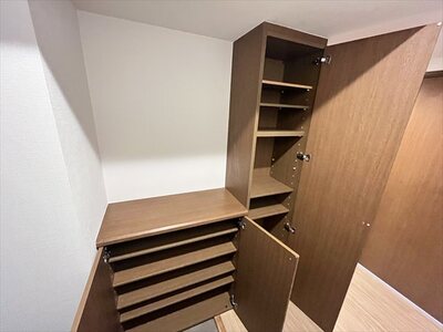 - 宅配BOX、BS、オートロック、エレベーター、駐輪場、バルコニー、モニタ付インターホン、ガスキッチン、室内洗濯機置場、独立洗面所、シャワー、シューズボックス、収納、温水洗浄便座、都市ガス、エアコン、ガス暖房、照明機器、浴トイレ別、メールボックス、インターホン